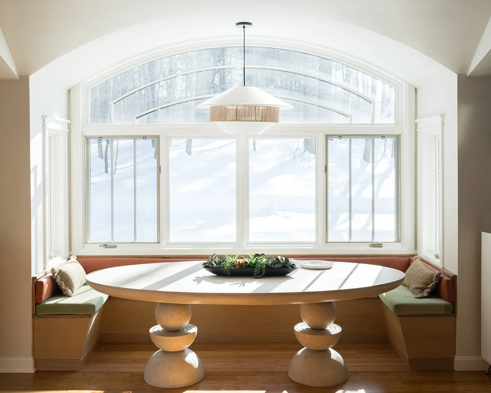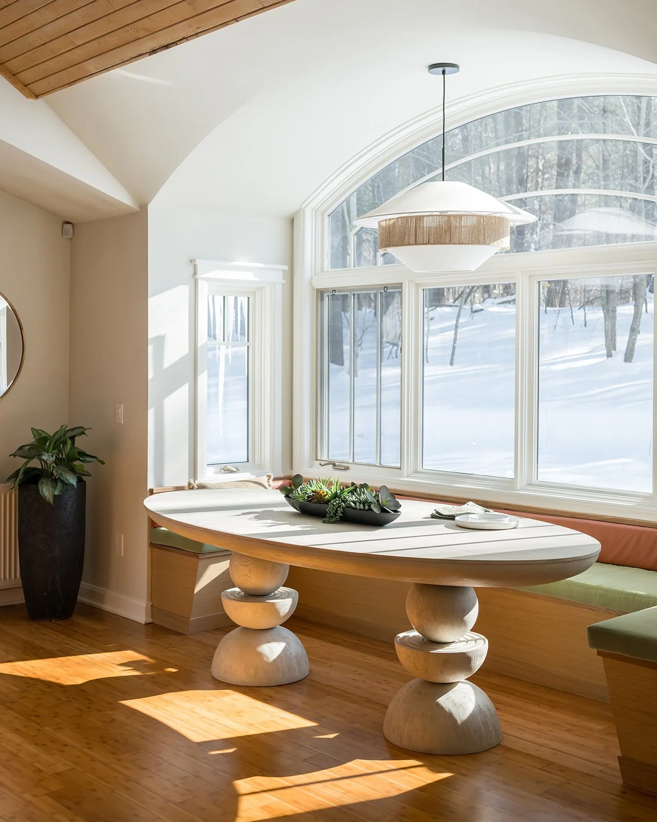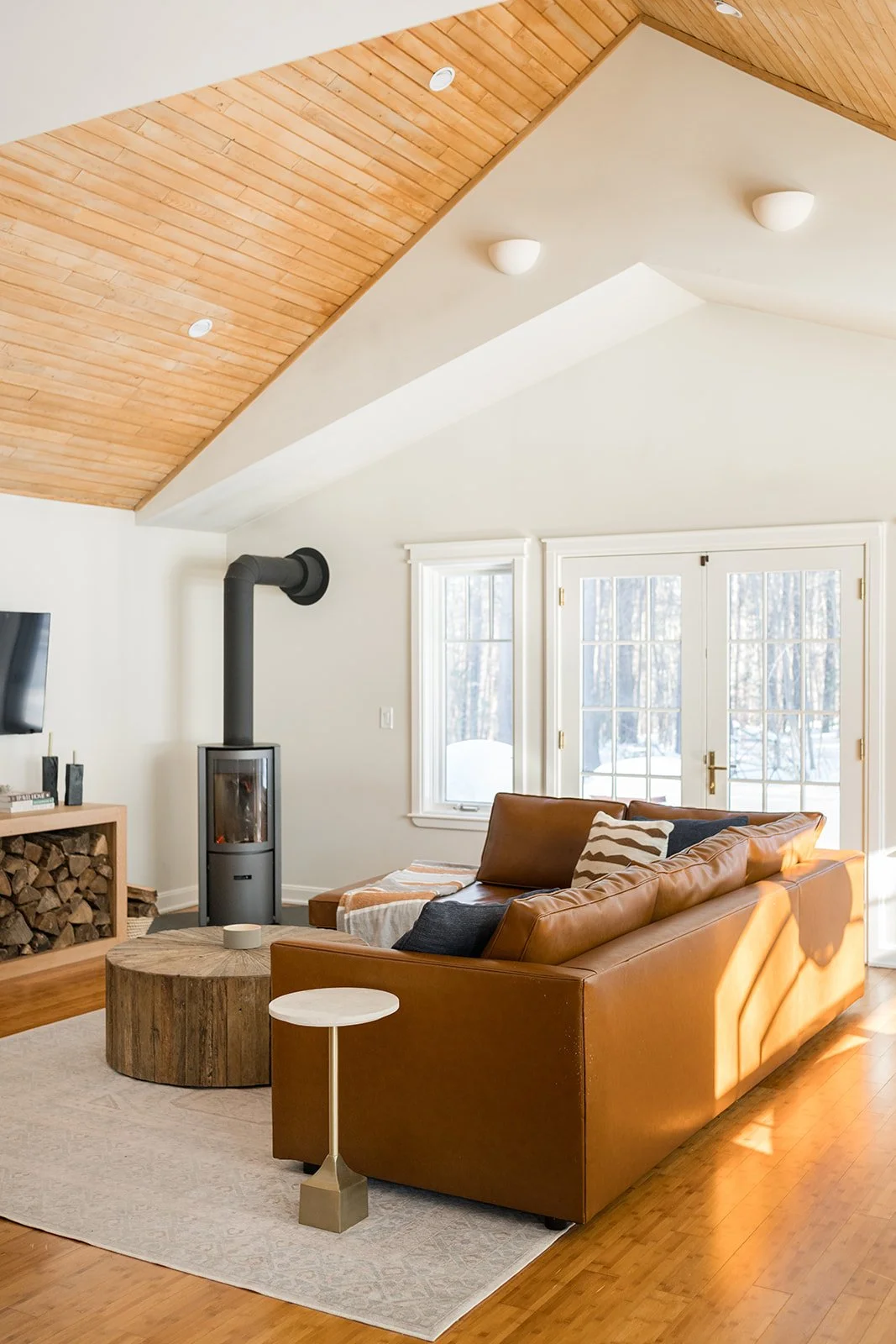 Creek Crossing began as a wooded Maine retreat with great bones but in need of thoughtful updates. To get this young family settled quickly, we approached the project in phases—starting with light-touch renovations that made an immediate impact. We refreshed the home with paint, updated the bathrooms, refinished the floors, and brought new life to a sunny alcove with a custom breakfast nook that originally drew our clients to the house. A modern Stûv wood-burning stove now anchors the living space (a favorite for both the family and their cat), while a former guest room was reimagined as a flexible office with a Murphy bed. Next up: transforming part of the garage into a hardworking mudroom, followed by a full kitchen renovation.