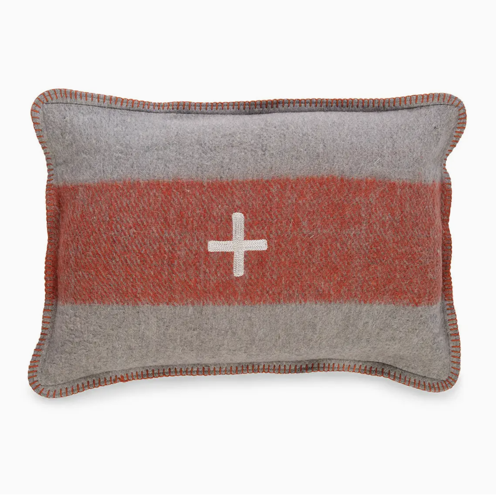 Inspired by original Swiss Army military blankets, these pillow covers make for an exclusive retro design. Each covering is made of 66% wool and 34% fiber stitching with a refined zigzag hem.